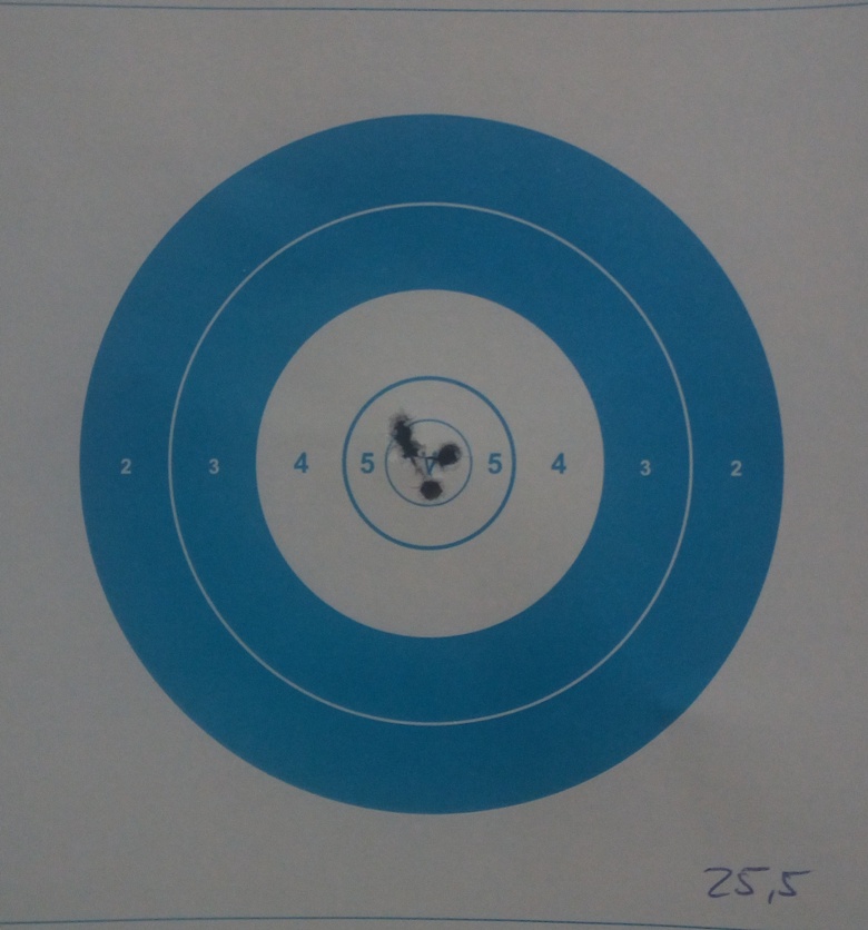 Un proyectil del .22, por ejemplo el SK Match Rifle, pesa 40 grains, (cuatro veces más), su velocidad standar es de unos 325 m/s., y a 115 metros, (distancia a la que mantiene más porcentaje de velocidad por ser más pesado), tiene una caída de unos 45 cm. y el mismo viento lo desvía 3,6", es decir, 9 cm.