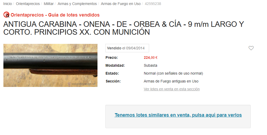 manolosolo escribió:Es una carabina española de principios de siglo, que se conocía como "ONENA", fabricada por Orbea & Cía (1898-1916)