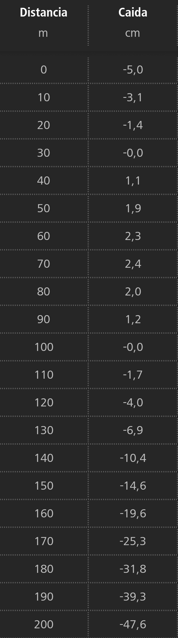 La segunda tabla creo que está bastante mal, una caida de 47 cm de 100m a 200m ???