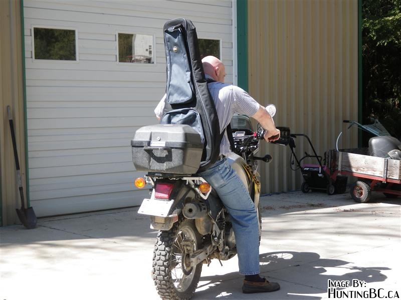 Si es por no dar la nota y evitar que la gente vea que llevas un arma, más que nada para no ser el blanco de algún ladrón, puedes llevar la carabina en una funda de guitarra, aunque es incómodo ir a 120 con la funda haciendo de paracaídas de frenado.