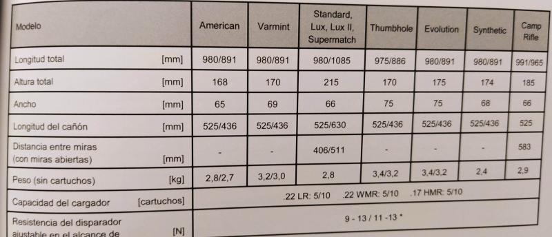 Por si interesa, adjunto foto de los datos técnicos de distintos modelos cz 455. Un saludo.