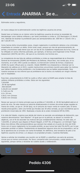 Que susto me ha dado!.Siempre nos quedará París , huy perdón , el tirachinas ... y chinos ( que no se diga que soy no se que sexista). En serio , como prohiban el 308 juro que me voy a quedar sin el.