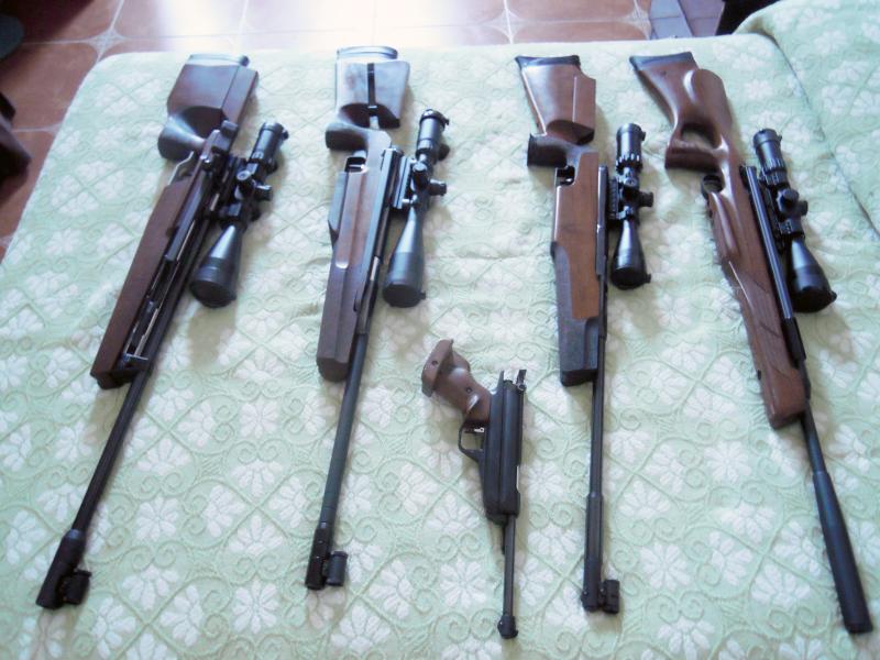 Tres escopetillas de ahí, costaban unas 125.000 pesetas de aquellas, en los años 80 del siglo pasado, y era con lo que se iba a las Olimpiadas, otra es de fabricación moderna.