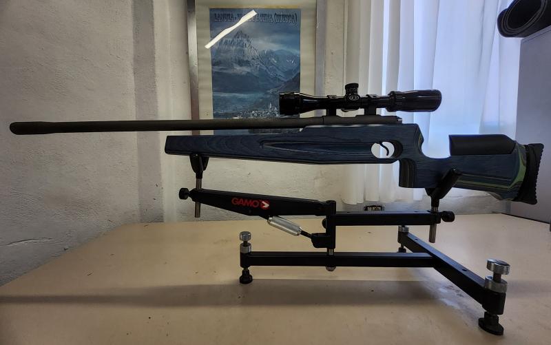 No se aprecia, pero el cañón tiene un acabado (valga mi ignorancia) como si fuese Gotelé, el acbado a gotas de las paredes tan famoso hará unas décadas, aunque como me estoy iniciando en Bench-rest no tengo mucha idea, pero me han comentado que es para evitar reverberaciones en la óptica de apuntado, si alguien sabe algo más y lo comenta se lo agradezco.