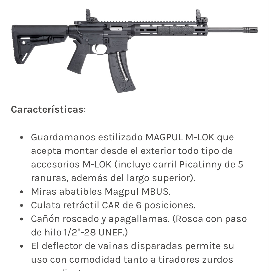 Glimmer escribió:Carabina semiautomática Smith & Wesson M&P15-22 Sport MOE SL.