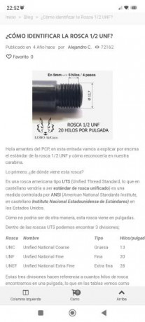 casadelabogado escribió:stvntman escribió:Tikka pertenecía a Sako desde 1983. Si el rifle Tikka T1X MTR del .22 LR emplea la rosca 1/2"-20 puedes estar seguro que tu Sako también. Podría existir alguna duda sobre los hilos por pulgada ya que hay rifles que emplean 28, siendo su descripción 1/2"-28, pero en Europa el 1/2"-20 es el más frecuente hasta donde yo sé en ese calibre (salvo que vayan a ser exportados a los Estados Apretados). Si pretendes en un futuro lejano acoplarle una bocacha apagallamas de diseño con otro paso de rosca puedes encontrar en la web de los chinos adaptadores macho/hembra muy bien acabados. Es lo que tiene la globalización.