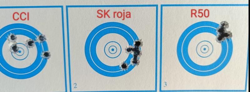 Estos dias he probado una CZ457 varmint a 50m con CCI Standard y con SK Amarilla, solo para tener las primeras sensaciones. Sin grandes diferencias, con la CCI los grupos han sido dentro de 1cm y consistentes pero con la SK quizas algo mas dispersos en mi caso. Tengo que probar SK Roja y alguna mas a ver que tal.