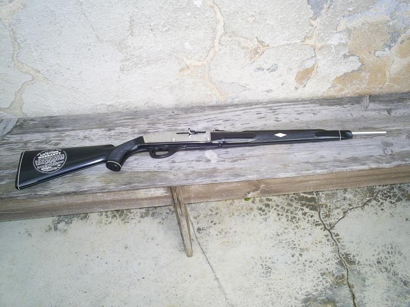 Os presento mi ultima adquisición para saber vuestra opinión. Ni que decir que estoy como una gallina con pollos. Esta carabina es el número 193486 de unos 200000 ejemplares de este modelo, en total del Nylon creo que se lanzaron unos 3.027.811 ejemplares siendo este el 3.023.527 entre todos los modelos. Tiene unos 28 años y unas 12 cajas de 50 balas tiradas y está impecable, el visor es de una carabina de aire y se lo puse para saber el look que tendría con un visor plateado, el resultado ya lo veis. Este rifle es de nylon y solo he visto tres contando este (debe de haber muy pocos). Deciros que en EEUU esta carabina del 22 es toda una institución con pagina web y todo https://www.nylonrifles.com. Comentar también que tiene una precisión de escandalo para ser una carabina concebida para tirar a la lata tan de moda en EEUU. Admito todo tipo de opinión y comentario. Si a alguien le interesa dispongo de más fotos. Saludos.
