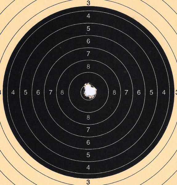 os dejo la foto de la primera diana pequeña que tiro a 50 metros con la zastava 22lr.