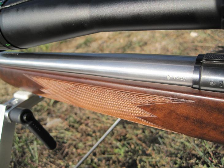La de éste tirador es la 1710 HB edición conmemorativa, exactamente la misma que aparece en la primera foto; eso sí, seleccionada, por su menor peso (dos culatas de madera iguales nunca pesan lo mismo, ¿verdad John?), entre todas las que tenía el distribuidor (Chano), dando un peso neto (sin tornillos para la correa, sin cargador y con un cerrojo con bola de madera (11 gramos, lo cual significa 77 gramos menos que uno convencional con bola de acero) de 3357,00 gramos.