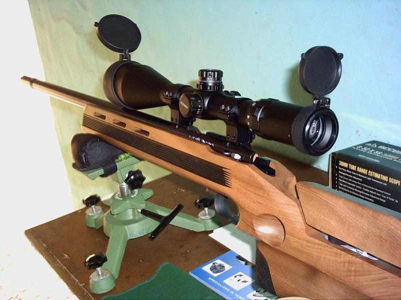 Aquí está con su visor leaper preparada para bench rest.