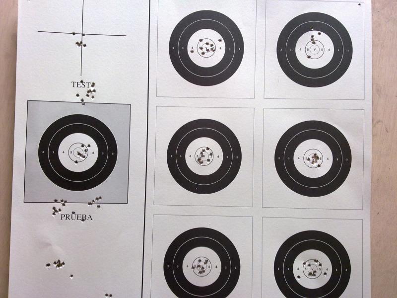 En estas diana hay 10 tiros en cada una, menos en la primera de la derecha,tiré con tres tipos de municion.