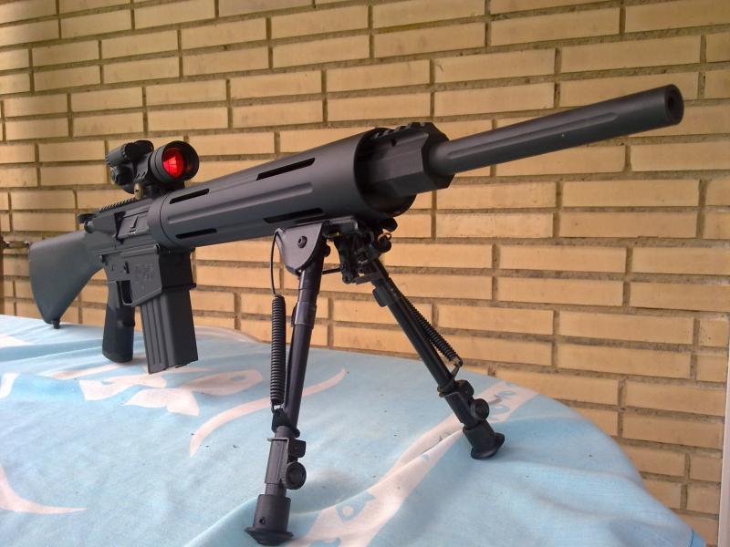 La unica reforma que tiene es que el guardamanos flotante esta recortado 15 mm. con vista ha aligerar su imagen, lo que deja ver ligeramente el tubo de gases. Su peso desnudo son casi 4 kg.Lleva montado un bipode y un visor Bushnell 6500 elite 4,5x32x50 mildot. Con estos accesorios el peso sube a 5,1 kg. con cargador 5,3 kg.