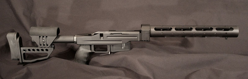 Hoy he podido probarlo por fin y la verdad es que es muy robusto y estable, a decir verdad debo adelgazar un poco el conjunto ya que todo el equipo incluido el bipode pesa 8,700Kgramos con lo cual debo de rebajar un poco el peso para adaptarlo a la normativa, el agarre es bueno aunque modificade un poco la salida del pistolet al aluminio, para hacerlo mas ergonomico,como vereis lleva puesto una culata Magpull y un pistolet de la misma marca, ya que como ha sido el primero me ha salido muy cuadrado, en la version 2.0 se modificara al completo
