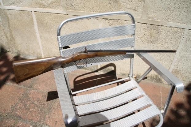 Así, sin ver más, no te puedo decir. Seguramente encontrarás marcas bajo la madera... Pero todo apunta a que es una de aquellas armas de jardín de finales del S. XIX (había muchas francesas, belgas y españolas) con sistema rolling block para calibres flobert de 6 ó de 9 mm. Esta parece de 9 mm.