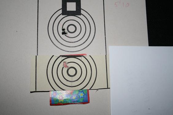 En esta fotocomposición se ve dps grupos. Uno fue la mejor agrupación de una tirada federativa en el año 2002 con 5.10 mm; los árbitros escriben los mm en ese lado y se ve la técnica que se usa para medir la distancia máxima de cada grupo. Nada del otro mundo pero representativo de lo que se puede hacer con una 452. El otro grupo es un recorte de un entrenamiento con una estampita de mi hija para que haga contraste; no está medido con exactitud pero se puede comparar con el otro. Ambos grupos son a 50 metros, en el mismo campo, en mesa de Benchrest y con torre y saquete. El primero se hizo por la mañana y el segundo por la tarde, quiere decir que el primero con el sol a las 5 y el segundo con el sol a las 10-11. Insisto en que con muchas 452 se han conseguido grupos así y puede que algún forero compañero tirador de BR-50 puede que tenga mejores grupos.
