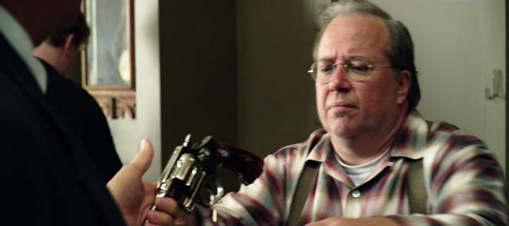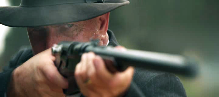 Todavía tengo que ver la peli completa, pero ayer puse la escena de la armería y disfruté como un crío. Solo por ella vale la pena sentarse ante la tele. Mi santa esposa, a la que he arrastrado por museos militares y armerías de medio mundo dijo, al verme babear ante dicha escena, que yo había nacido en el país y la época equivocada, y no le falta razón. Está claro, además, que el que escribió la escena entiende de armas. Es la primera vez que veo una peli que identifique correctamente un colt monitor y que se mencionen los clips en "media luna" para un S&W 1917 (aunque la versión española los traduce incorrectamente como "cargadores")