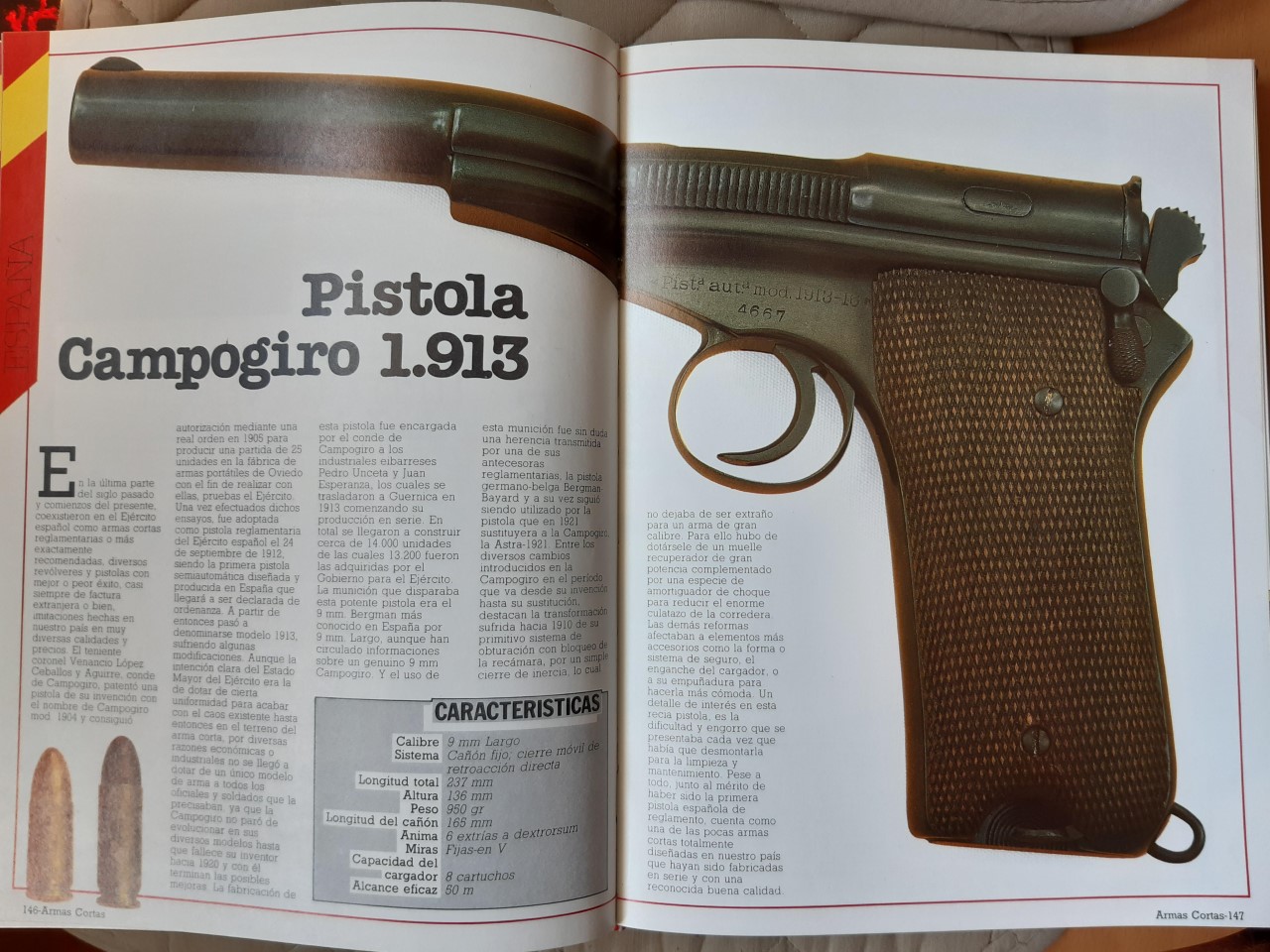 Es de 1985, ya ha llovido. Lo editó en fascículos Hobby Press, para formar un único volumen de casi 400 páginas en gran formato (casi A4), todas ilustradas en color, como era costumbre en aquellas enciclopedias por fascículos, que al final te salían por un riñón y la mitad del otro. Organizado por países, y de ellos las pistolas (y algún revólver), desde finales del XIX hasta el momento de publicación de la obra (con modelos como la HK P-7, novedad en su época, o la Beretta 92). Las armas más representadas son las españolas, cosa de agradecer en una obra de este tipo. Incluye fotos de despiece básico de los modelos más importantes. Si lo encontráis en precio, puede merecer la pena.