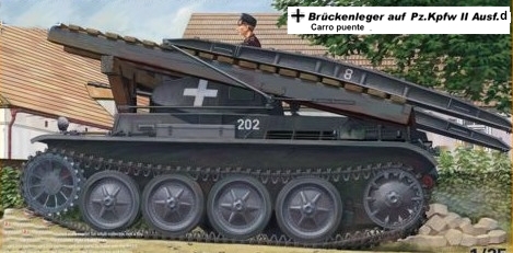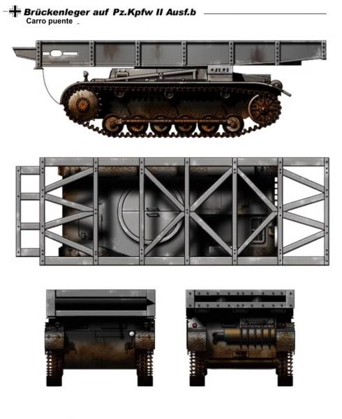 El segundo el Sd.Kfz.101 Pz.Kpfw II Ausf.B Brückenlegerpanzer II, del tipo abatible, aunque yo no tengo ningún imagen que me lo confirme.