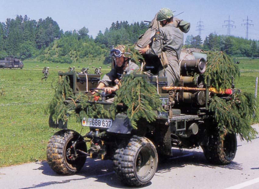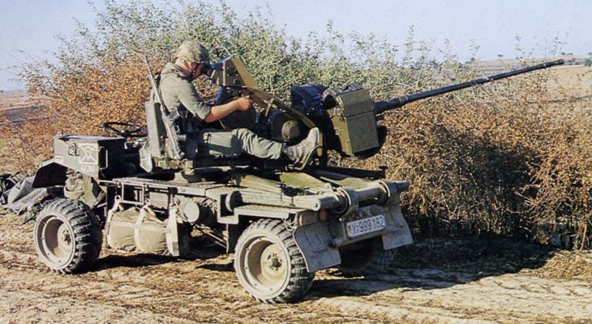 Solo se que de nombre es "KRAKA". Una mula mecánica, que o es esta o otras de similares las he visto con TOW, MILAN, una del 50, un Rheinmetall 20 mm ....
