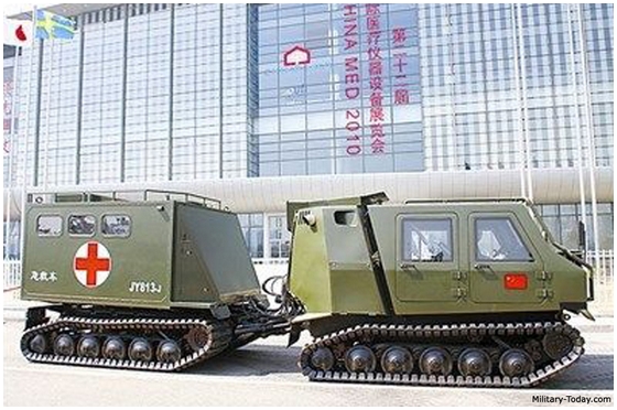 Continuando con el post, me voy a saltar el tema de los VCI (Vehículo de Combate de Infantería), porque es mas largo y paso a los medios de transporte blindados digamos logísticos. China como todo, ha copiado un gran numero de variantes de vehículos de modelos occidentales, uno de ellos es el Jonyang IY183 JY813 que se parece mucho al Bronco ATTC de Singapur y esta a su vez, basado en los suecos Alvis Hägglunds Bv 206. El Jonyang puede llevar 16 soldados mas conductor se fabrica en varias versiones, ambulancia, carga general, transportador de cisterna, comunicaciones, etc., y los chinos tienen una buena cantidad de ellos. Para su defensa solo lleva una ametralladora de 12,7x114 DShK 1938