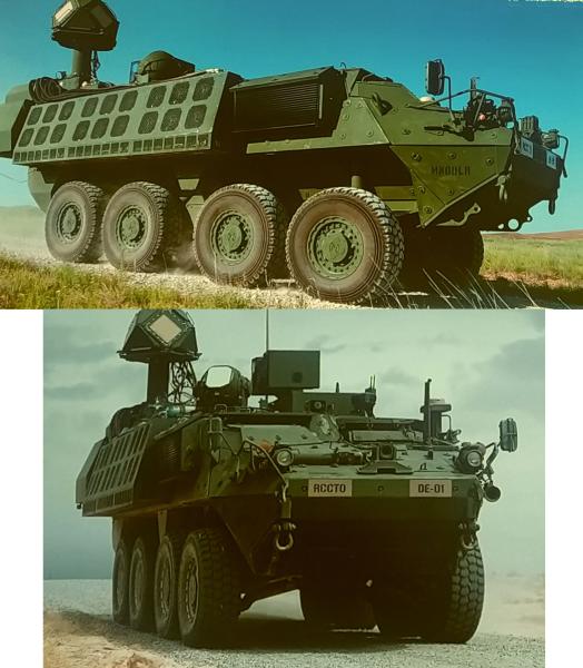 Este tipo de sistemas es el que lleva el nuevo Stryker 8x8 equipado con varios equipos M-SHORAD que os muestro en las diferentes variantes.