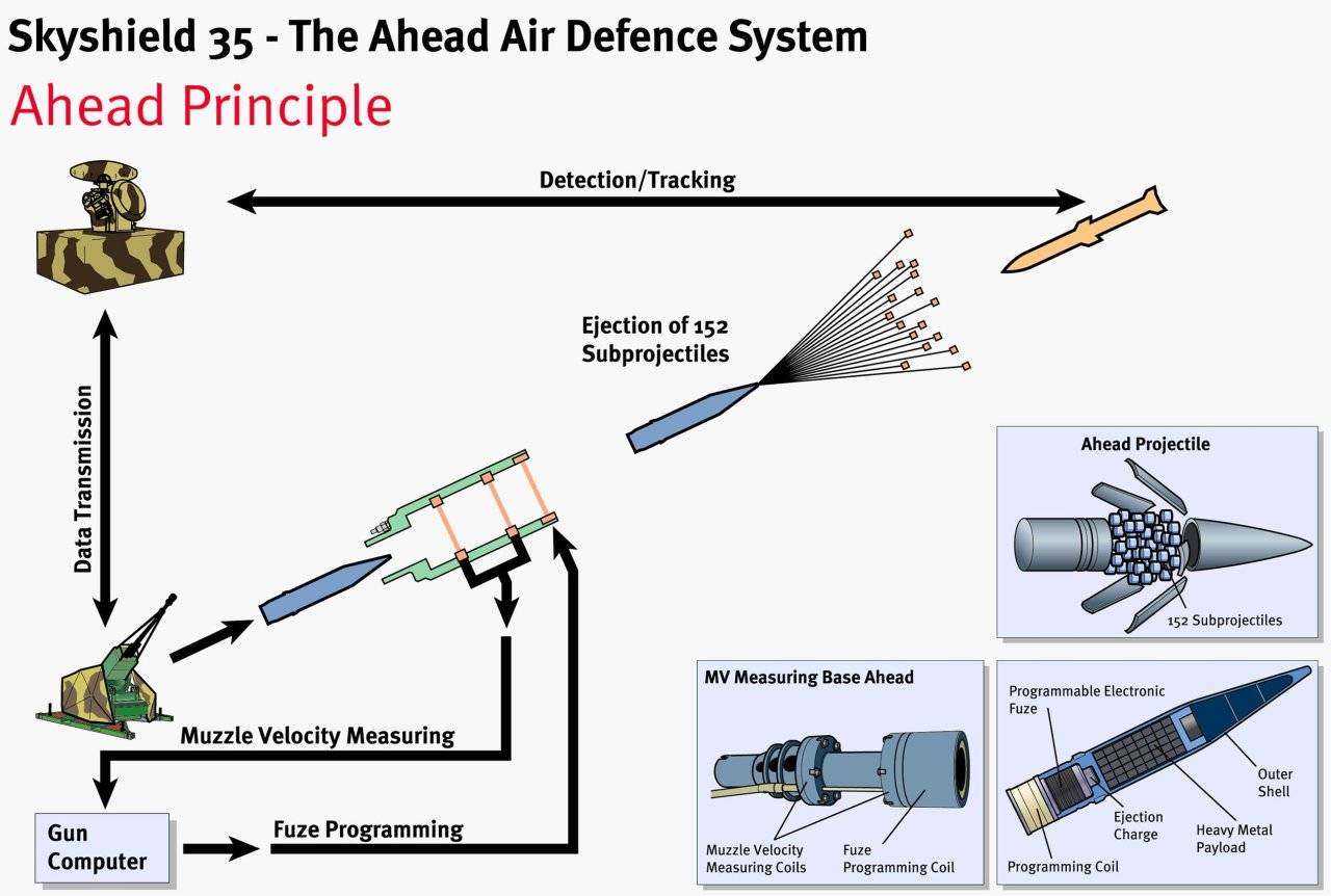 Aunque por ahora, lo que parece mas razonable son las municiones programables, en vehículos como KF41 Lynx Skyranger 35 (o en su torre), por supuesto con la munición AHEAD (Advanced Hit Efficiency And Destruction) con mas 4 km de alcance.