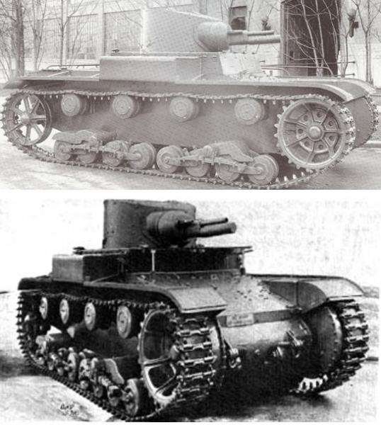 Pero principalmente os pongo los carros experimentales dotados con el sistema de rodaje Christie que sabéis que se diferencia del Vickers, en que el Christie o “de cadena colgante”, la cadena descansa sobre las ruedas de rodaje y en el Vickers descansa sobre los rodillos de apoyo.