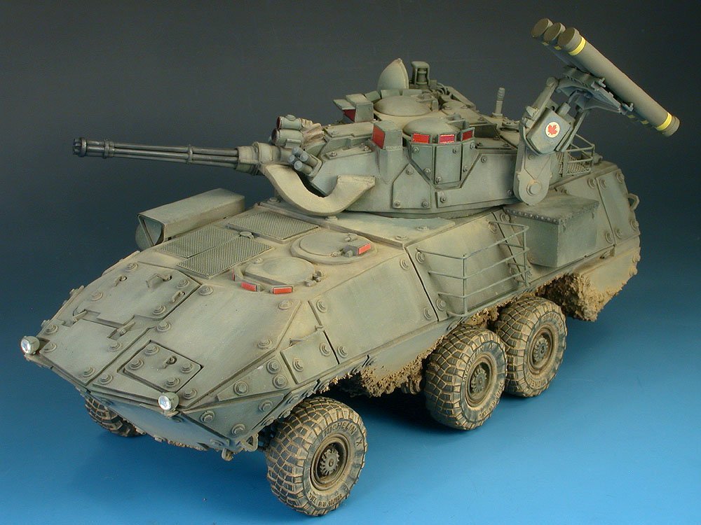 LAV antiaéreo con combinación de cañón vulcan y misiles en un lanzador plegable, ejército canadiense: