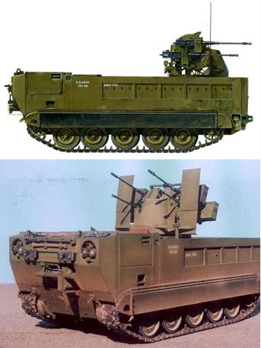 3.- M548 A1 AAA con la torre del carro M42 Duster equipado con dos cañones Bofors de 40 mm. Autentica trituradora de carne en las selvas y caminos de Vietnam. Este vehículo en combinación con la versión M-548 con el montaje M-50 con ametralladoras del .50 y los camiones con el mismo montaje se intercalaban entre las largas columnas de camiones con suministros dedicados a las bases alejadas y eran frecuentemente emboscadas. El fuego combinado de los tres vehículos era terrible, de hay que muchas veces el Vietcong pasa de atacar cuando veían la "escolta" de las columnas.