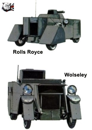 Nuevamente comento que lo que saco ahora es del periodo 1900 hasta los años 20 principio de los 30. Los vehículos posteriores como los Dingo, los Humber o los Ferret, no los expongo puesto que como digo, son posteriores.