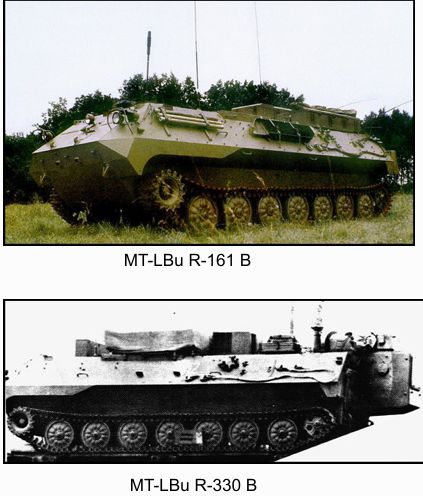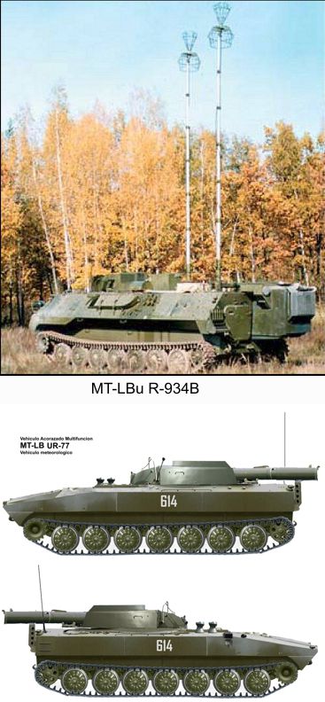 Imagen 15.- MT-LBu MP-21 mando de división (tres vehículos de este tipo conforman el puesto de mando TOP de una división) y un MT-LBu MP-22 mando de batería