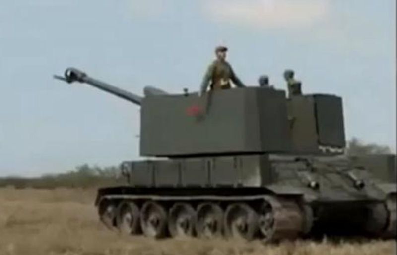 Pero también he encontrado esto; otro ATP que la web (https://www.reddit.com/r/TankPorn/comme ... nted_in_a/) identifica como un T-34/85 transformado con la torre recortada y un cañón D30 instalado.