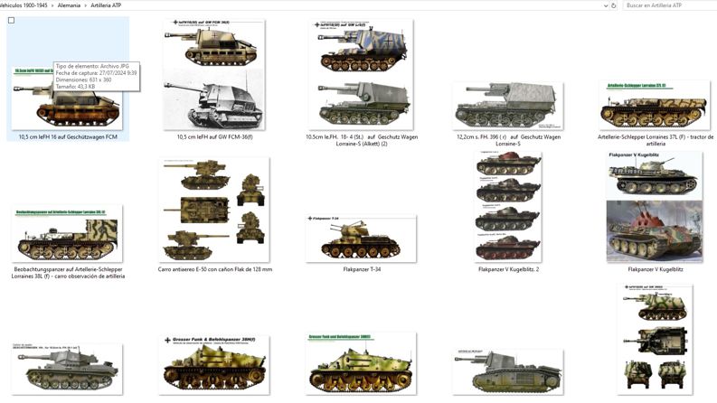 El número de imágenes que tengo entre todas las carpetas no lo he calculado, pero por ejemplo de semi orugas alemanes tengo 171 variantes o casi 100 en carros de combate medios también alemanes, en fin, muchas, son casi 50 años metido en el tema de los carros y blindados.