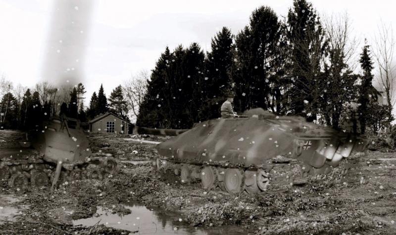 La presencia de los Jagdtiger II (Panzerjagerwagen E90) con cañón 150mm KwK permite que la infantería alemana pueda incluso tomarse un descanso entre combates