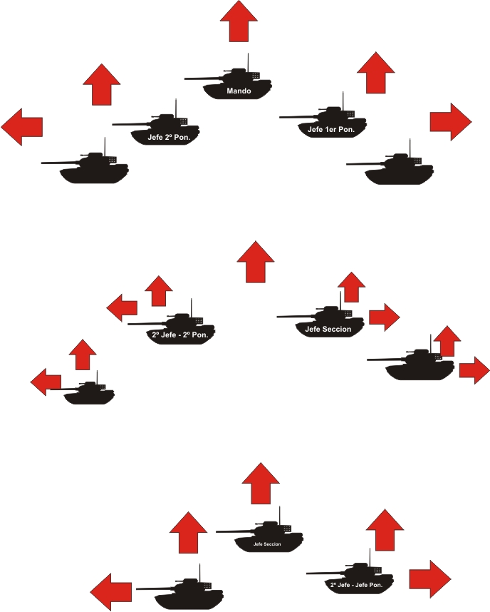 Pero hablamos de la sección de 3, pero también existe o existía hasta hace poco y más en nuestro ET., la sección pentomica, o sea 5 carros con la distribución que explique al principio.
