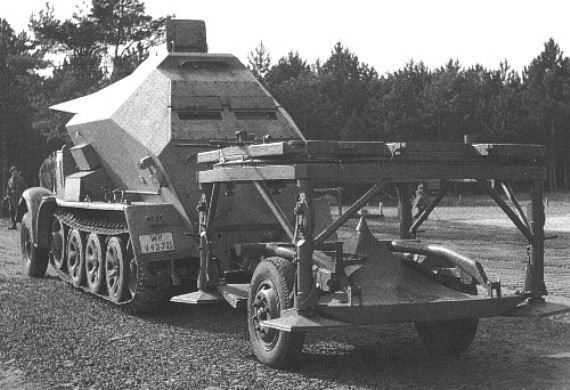 Aparte el equipo llevaba un semioruga Sd.Kfz 3 Opel Maultier de radio, un vehículo de reparaciones, otro para todo el tema de hidráulica, 1 grupo electrógeno y varios remolques especializados.
