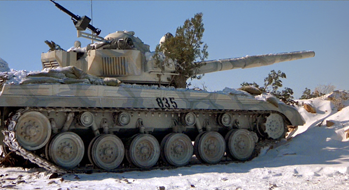 tambien, para esta pelicula, y utilizando la misma plataforma (M8), aparecieron carros "T72"