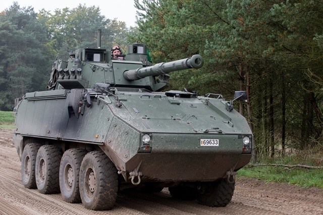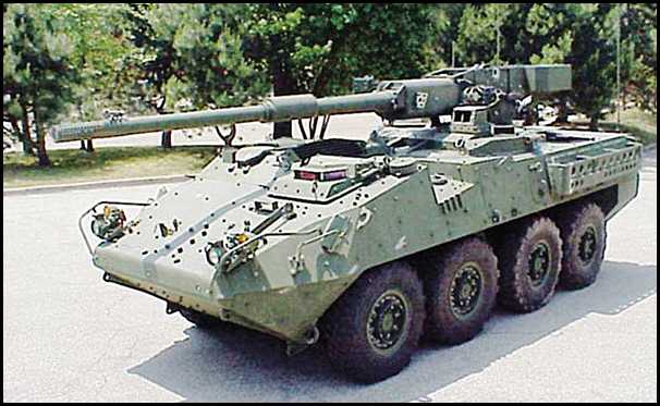 El M-1128 Stryker FSV de apoyo con cañon de 105 mm y el M-706 Commando también con tubo de 105 mm