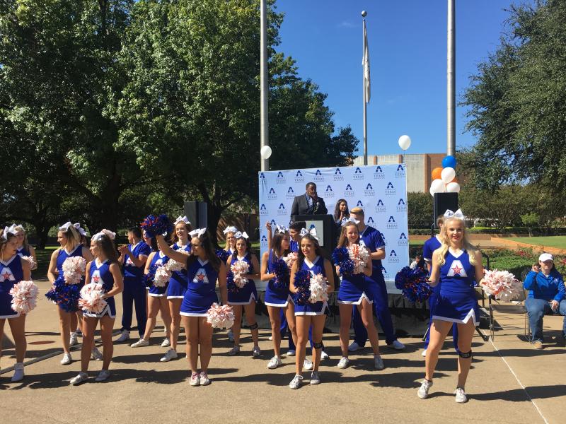 Con motivo del aniversario, se podian ver cosas tan de pelicula danzando por la universidad, como las tipicas animadoras que se ven en las peliculas americanas de adolescentes: