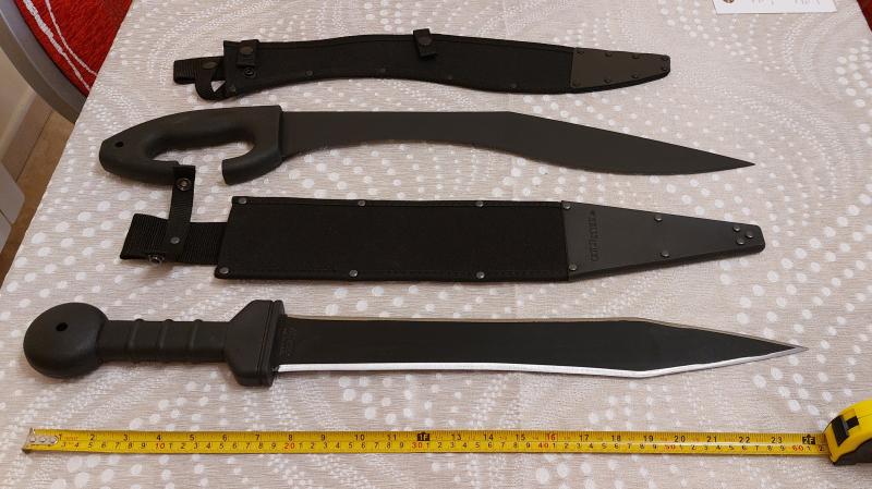 Los machetes son Cold Steel, un modelo Kopis y un Gladius