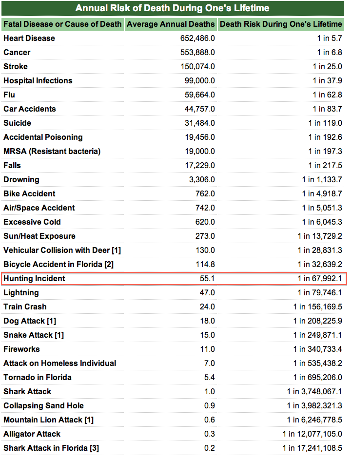 Es más facil morir de una insolación 1 contra 13,729.2 o incluso de una caída, 1 contra 217.5