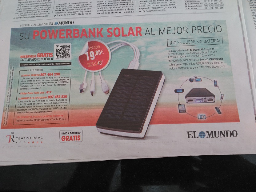 Retomando el tema de los "cargadores solares" he encontrado por casualidad esto en "El Mundo" de hoy