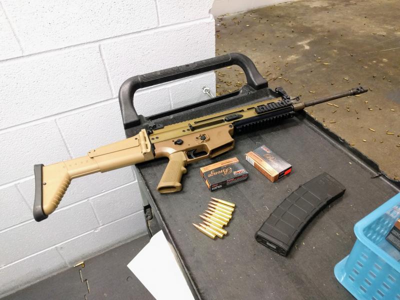 Nos dan el SCAR, nos informan del precio de las munciones, 7,99 dolares la cajita de 20 cartuchos del 223 (las del 7,62x39 tambien), asi que piyamos 1 per capita, yo dos, se paga despues. Nos las ponene en una practica cestita de plastico y nos dan gafas y cascos. Nos dan a elegir el blanco que queremos y para la suite.