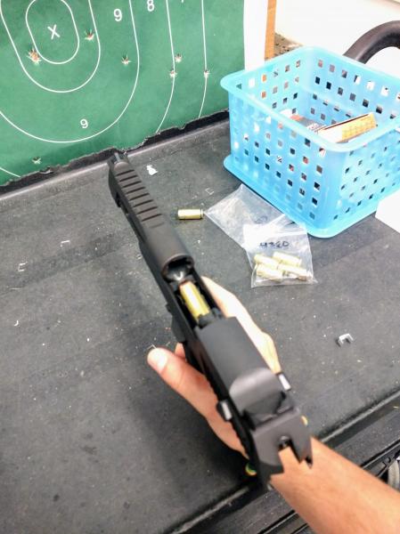 Pasamos al arma corta, mas divertida a estas distancias. Entre la amplia gama, me decante por una 9mm para que los novatos tengan una primera experiencia, elijo una sig, que no tenga polimero, la clasica p226.