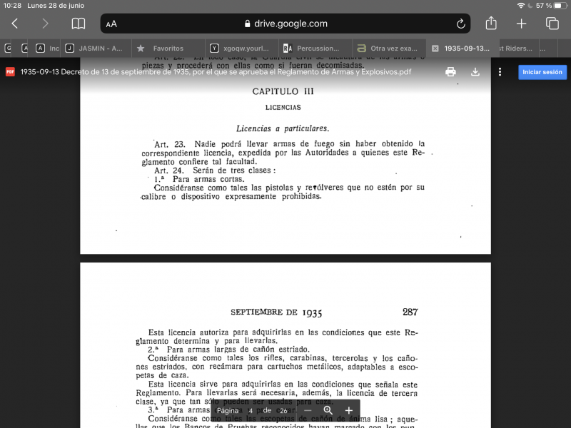 Es en el reglamento de la Rep de 1935 donde se introduce giros dacronianos, ( como no, por la “iz”), y prohibiendo armas cortas salvo socios del tiro , a los cuales mete restricciones importantes, y casos de necesidad. Toda esta bazofia de guias de pertenecia, circulacion, licencias, antecedentes o certificados del registro de penados, no lo inventó Franco.