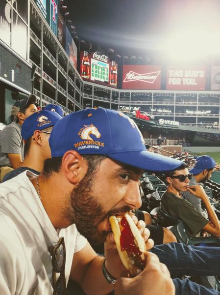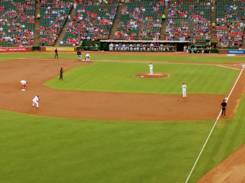 Mi primer partido de Baseball. Lo pase genial aunque los Texas Rangers hicieron bastante el ridiculo contra los Seattle Mariners. Dentro, los perritos calientes a dolar, las cervezas de 33 cl a 6 dolares y las de medio litro a 9$ (menuda clavada), lo que hubiera dado yo por mis litros de estrella levante a euro con 20.