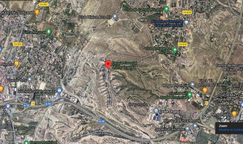 Al Parque forestal Monte Orgegia, el nombre de parque forestal le viene grande. Está rodeado por la localidad de Villafranqueza, Majaverde y la saturada autovía A-70.