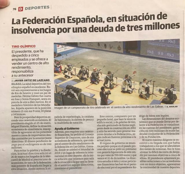 Asimismo os remito las últimas noticias aparecidas en algunos medios de comunicación sobre la situación de la RFEDETO, circunstancia conocida prácticamente por todos vosotros (adjunto archivo).