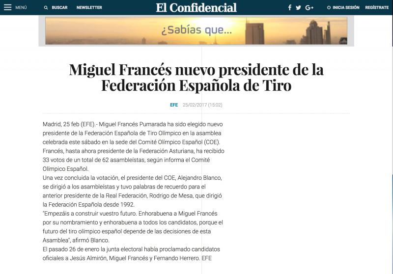 COIOT escribió:Muchas felicidades a toda la família del tiro olimpico en general y al señor Miguel Frances Pumarada en particular, asi como a los deportistas que lo han hecho posible.![]()